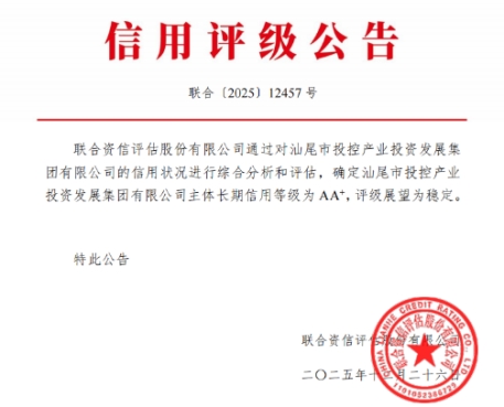 再創(chuàng)佳績!汕尾投控下屬產發(fā)集團喜獲“AA+”主體信用評級